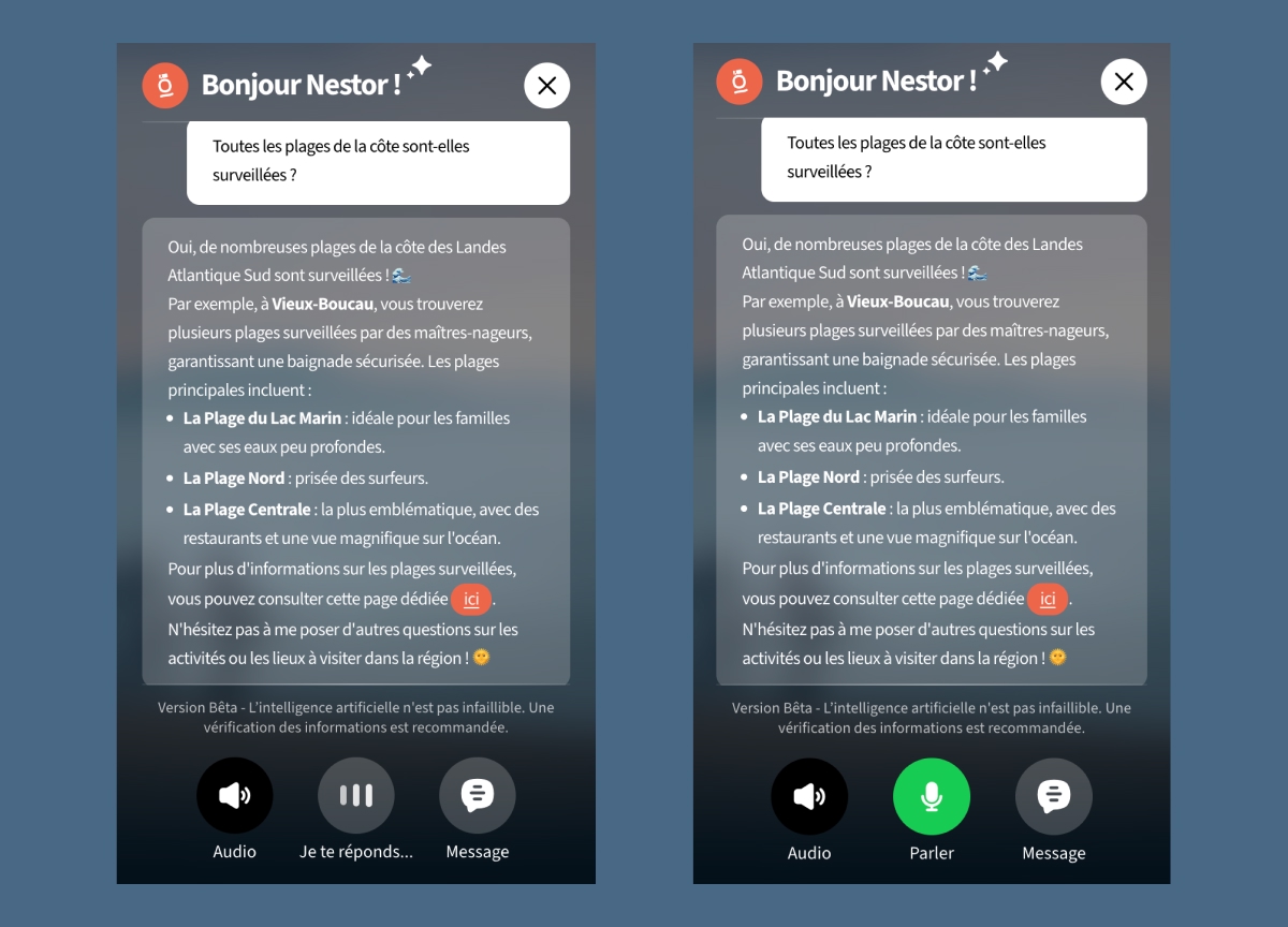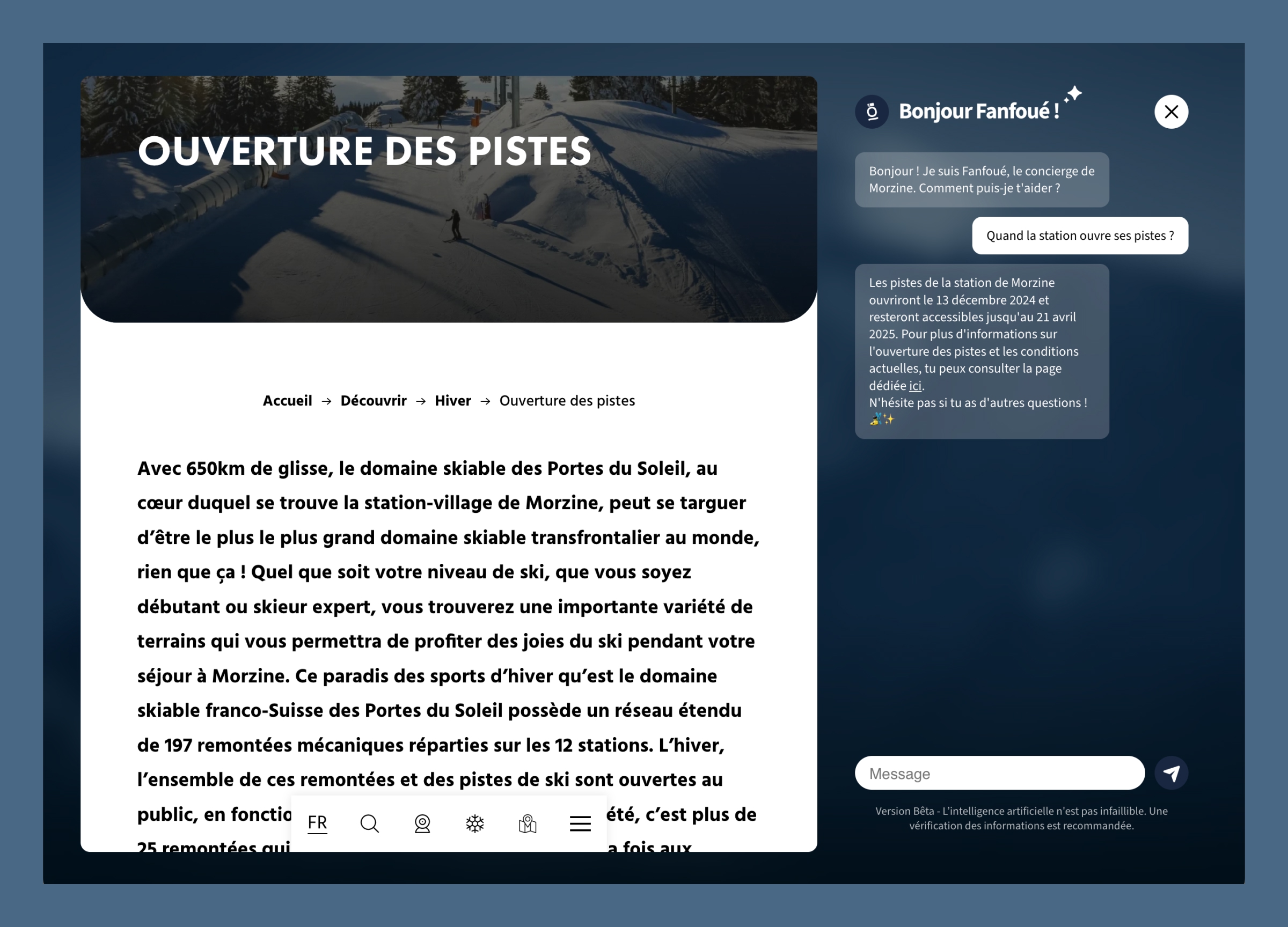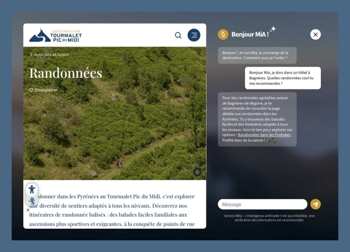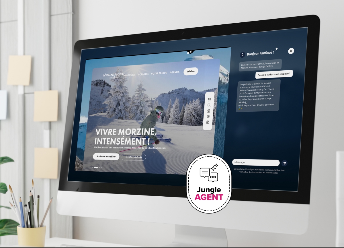 Grâce à Jungle Agent, les destinations bénéficient d’un assistant virtuel vocal et personnalisé, désormais doté d’une base de connaissances boostée pour maximiser l'exploitation de vos contenus (éditoriaux et S.I.T.) et délivrer des réponses toujours plus pertinentes.