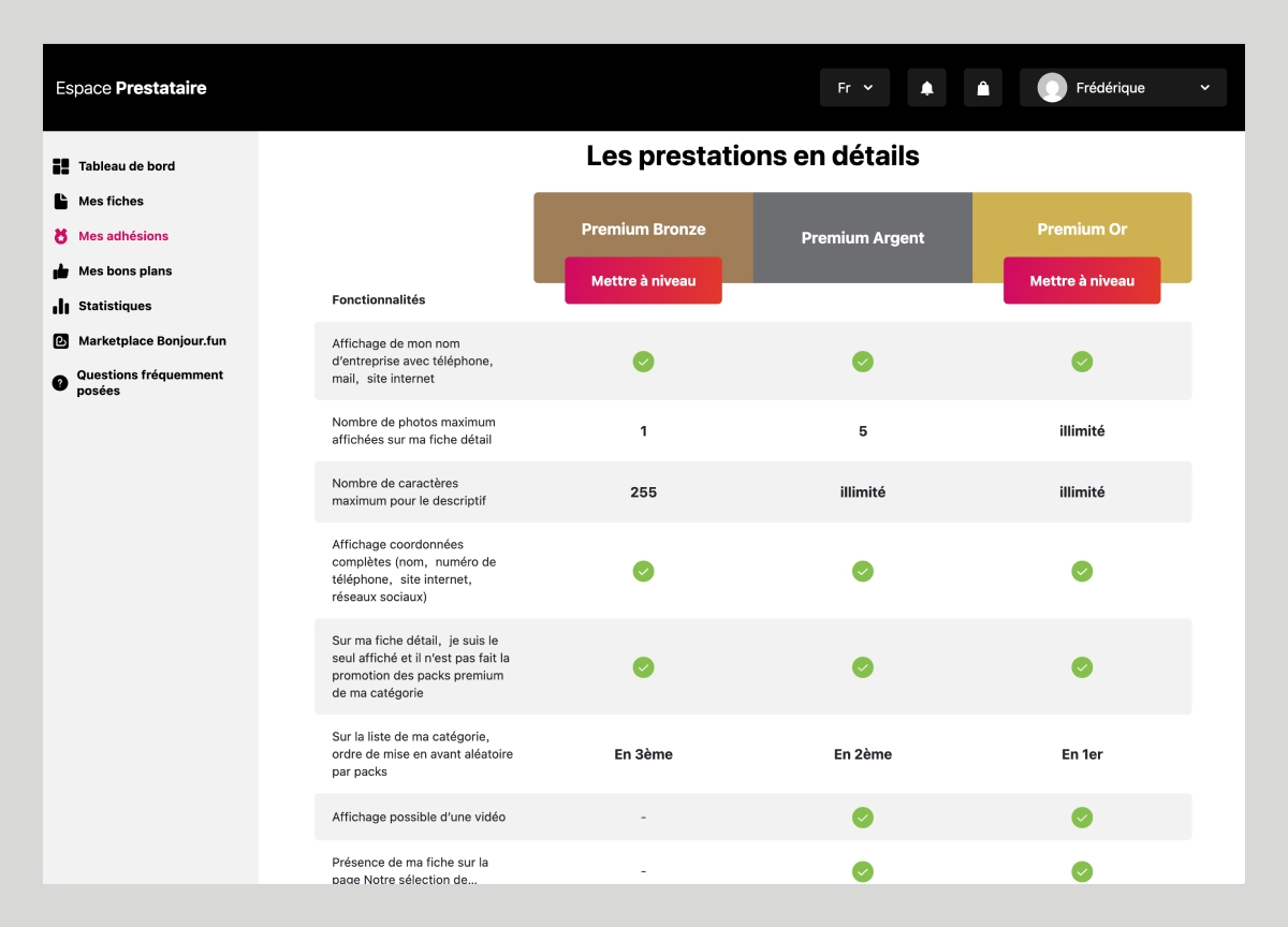 Un tableau de bord global permet de visualiser l’ensemble des prestataires, leurs statuts d’adhésion, leurs contributions et leurs propositions de bons plans, facilitant la coordination quotidienne entre les équipes.